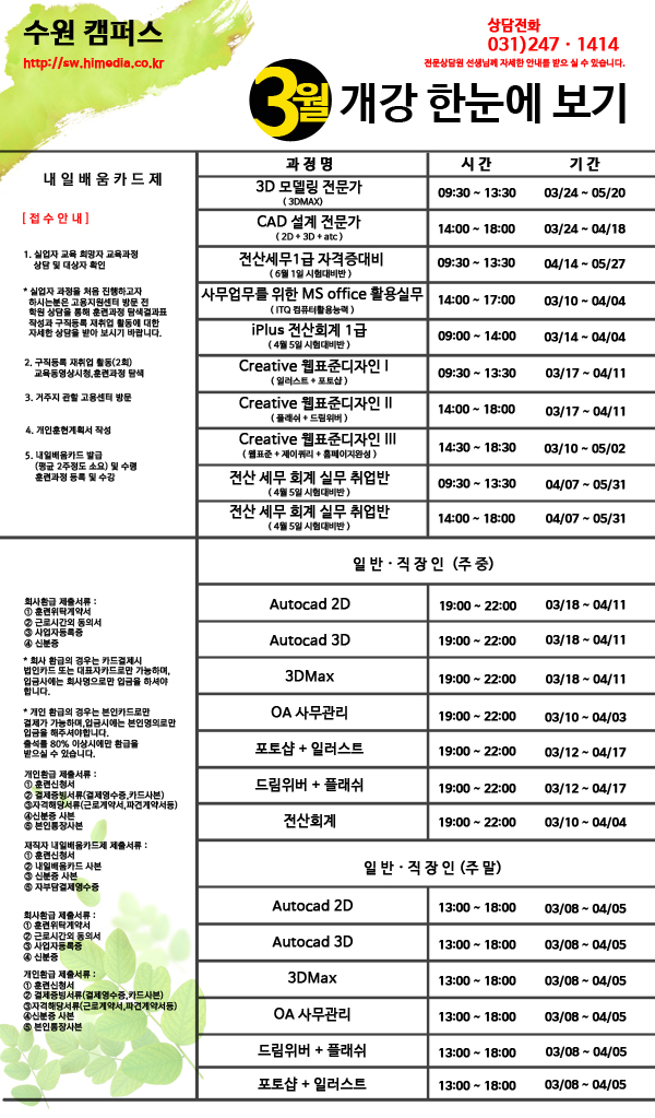 3월 개강 한눈에 보기